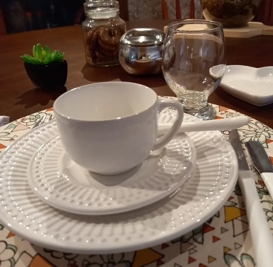 A meseira disse que a mesa posta não exige excesso, mas pelo contrário, pede essencialidade. “Os itens variam conforme o tipo de refeição. Café da manhã ou lanche da tarde pedem xícaras com pires, pratos de lanche (ou sobremesa) e talheres de sobremesa. Já o almoço ou jantar, pratos principais, pratos de sopa (se houver), facas, garfos e colheres adequados. Cada utensílio tem sua função e deve estar disposto de maneira organizada, facilitando e nunca atrapalhando a experiência da refeição”.