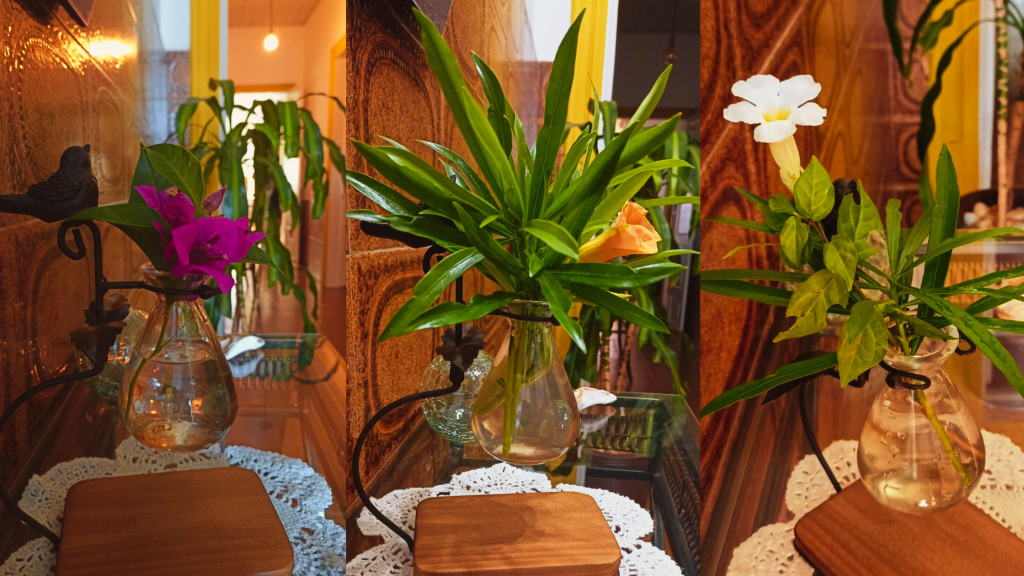 Tem dias que a casa recebe flores e folhas frescas para compor formas e cores, adornando os espaços e trazendo um pouco da natureza para dentro da morada ateliê e da minha alma de poeta mesclada com artista.