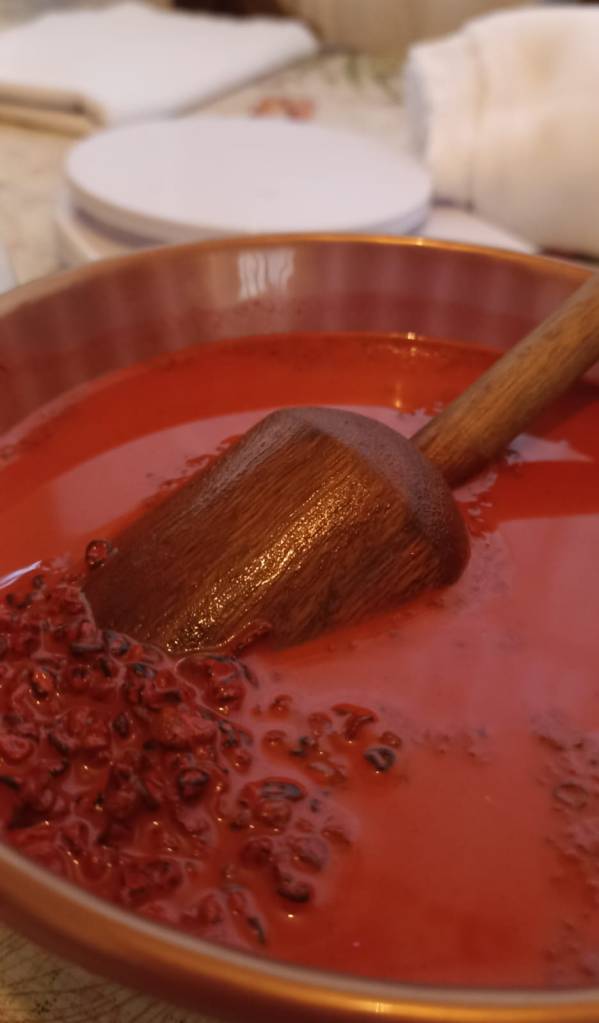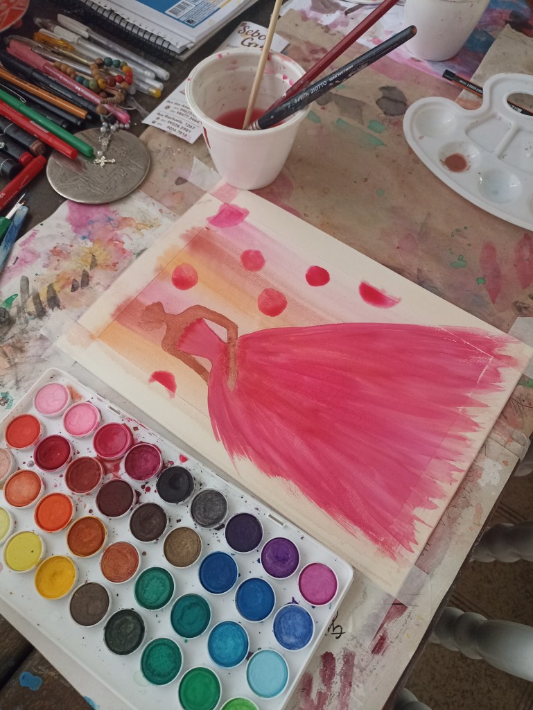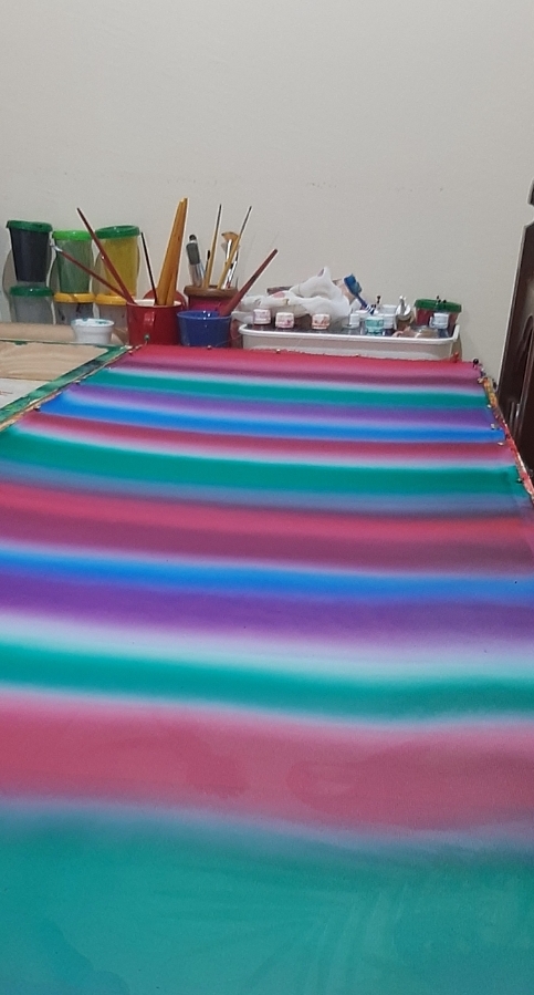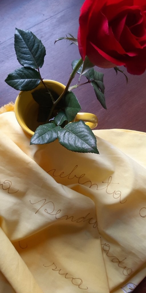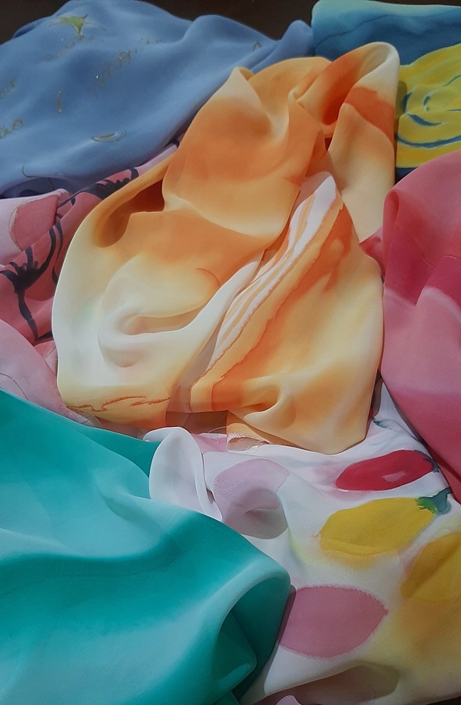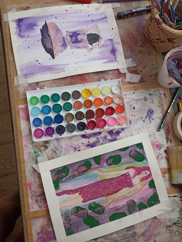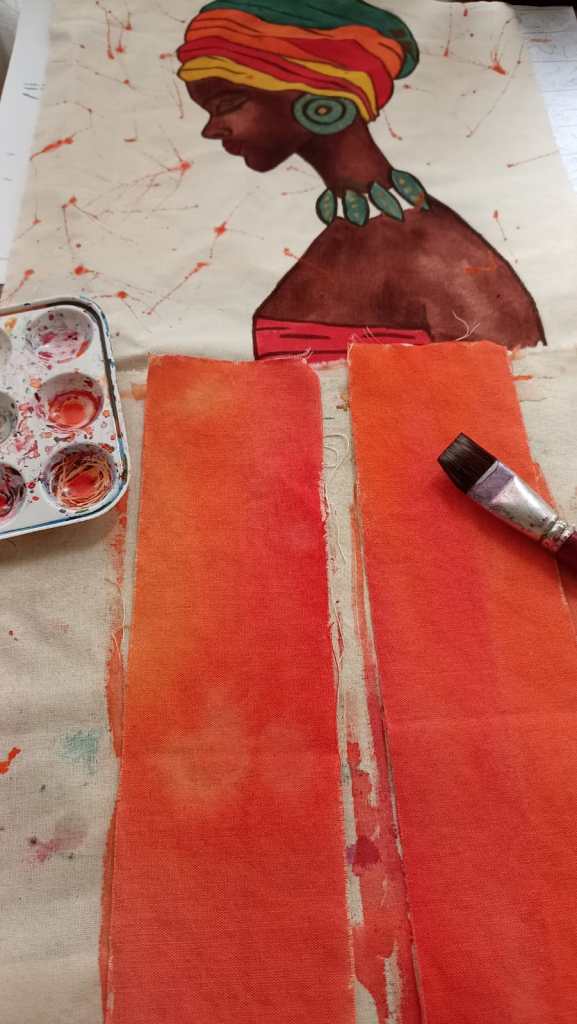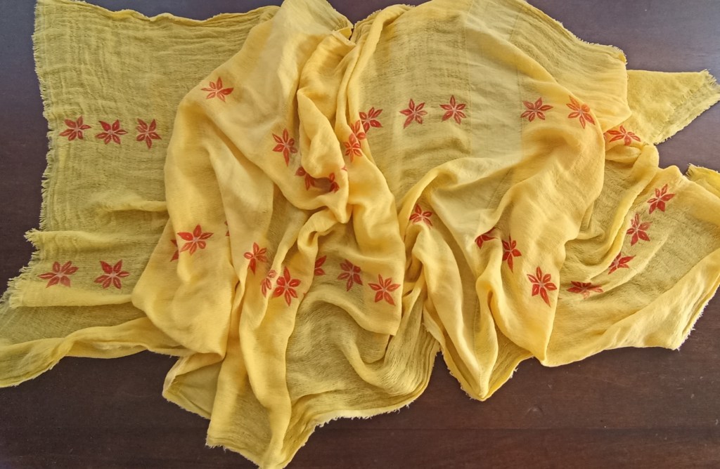 No ateliê, trabalho com processos lentos que amo. Tingimento natural e estamparia manual, através da técnica milenar de blockprinting, do desenho livre no tecido e da aquarela (têxtil e no papel). Aqui faço meus croquis de moda e experimentações. Erros e acertos. Isso alimenta a minha alma, nutre meus dias. Jamais viveria sem essa arte.