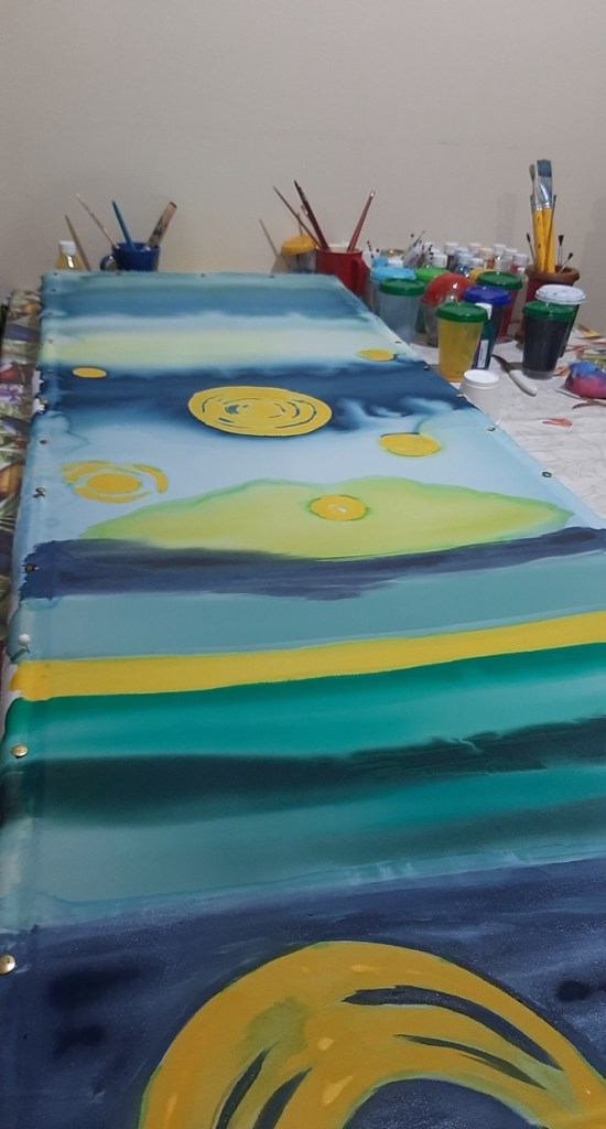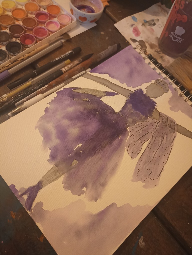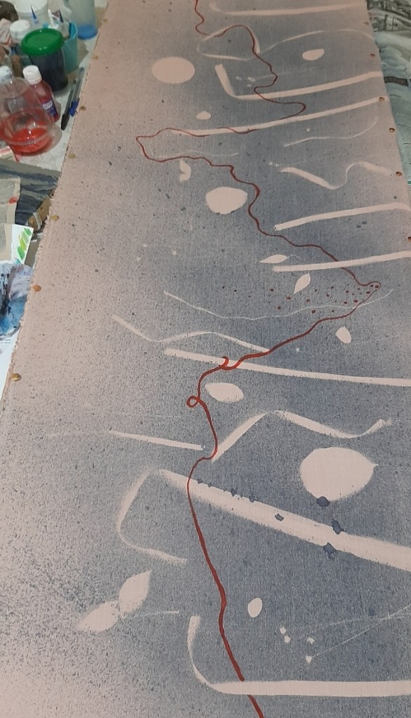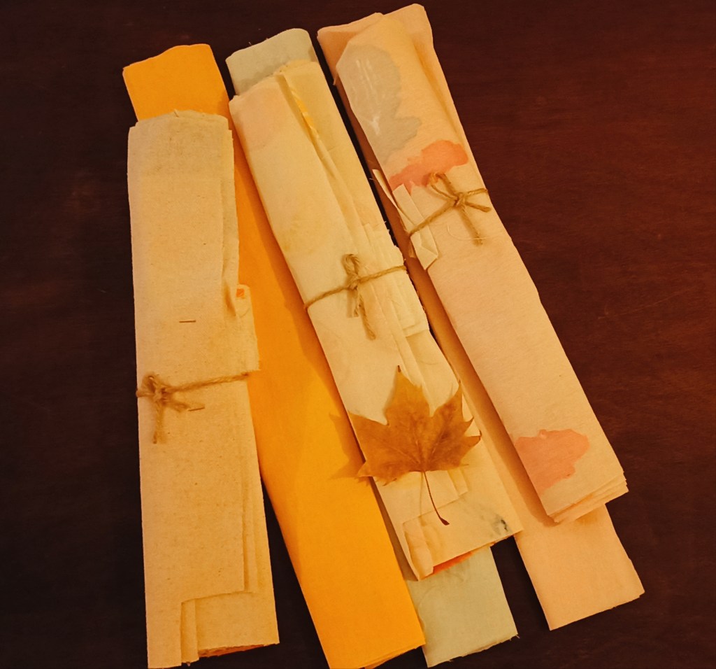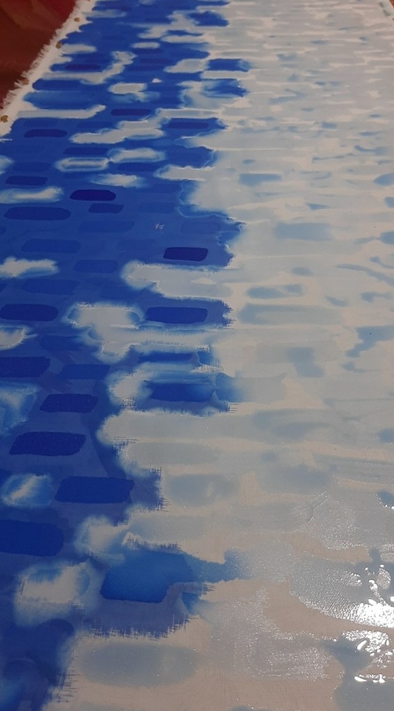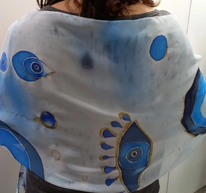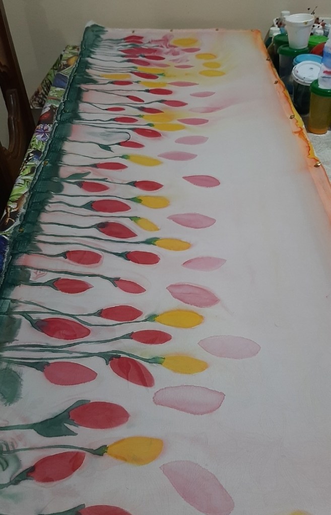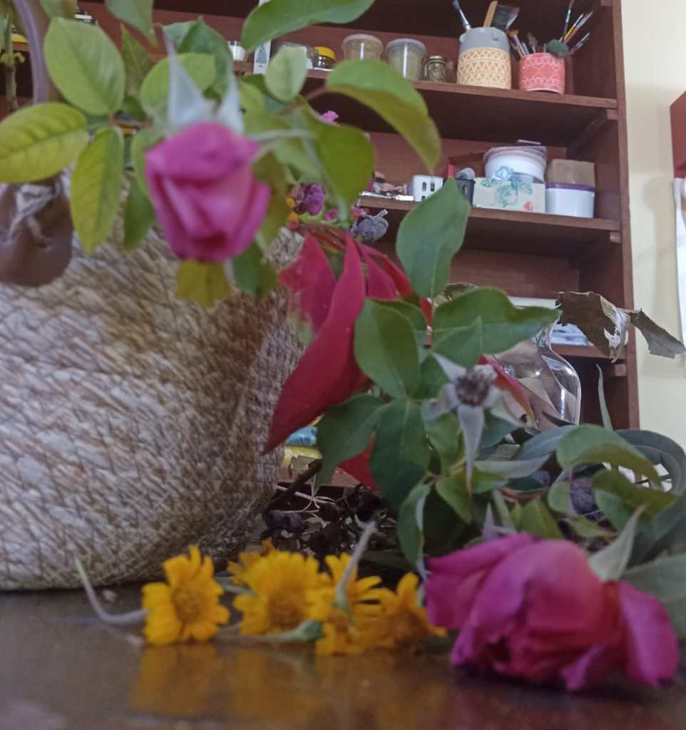 No ateliê, trabalho com processos lentos que amo. Tingimento natural e estamparia manual, através da técnica milenar de blockprinting, do desenho livre no tecido e da aquarela (têxtil e no papel). Aqui faço meus croquis de moda e experimentações. Erros e acertos. Isso alimenta a minha alma, nutre meus dias. Jamais viveria sem essa arte.